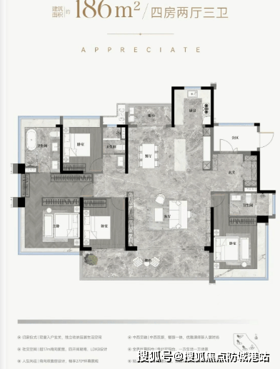 在建筑设计和户型规划上,该项目同样展现出了极高的水准。作为越秀地产的最新力作,它充分吸收了最新的建筑设计规范,推出了多款高使用率的创新户型。这些户型的面积区间覆盖了一百零五平方米到一百八十六平方米,主要以四房为主,旨在满足改善型家庭的多样化需求。其中,一百零五平方米的户型堪称“神户型”,在有限的建筑面积内,通过巧妙的设计,实现了四房两厅两卫的格局,且每个房间都具备实际的居住功能,没有丝毫的空间浪费。客厅开间达到了六点二米,可以根据家庭需求灵活布置,既可以作为传统的会客区,也可以改造成孩子的游乐区或主人的书房。餐厅宽度超过四米,摆放圆桌也显得宽敞大气。主卧套房设计更是奢华,拥有独立的衣帽间和带有三分离设计的卫生间,二十七度的景观飘窗让室内外景色无缝衔接。