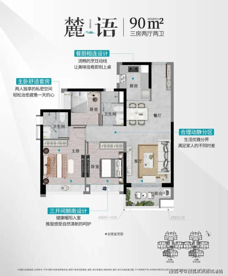 建面约80方三房一卫科城甄稀户型、约90方三房两卫三开间朝南阳光户型、约95方三房两卫横厅精致户型,约110方四房两卫人气尊享户型。