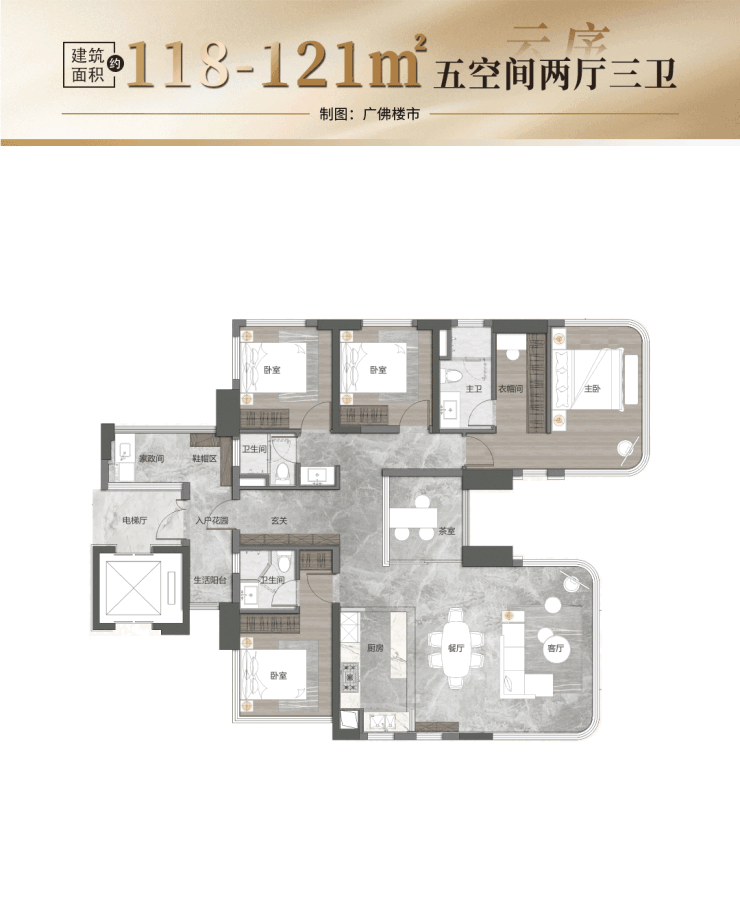 118㎡户型:享受177㎡的宽敞空间,折算实际使用面积单价2.7万/㎡,兼顾尺度感与性价比。