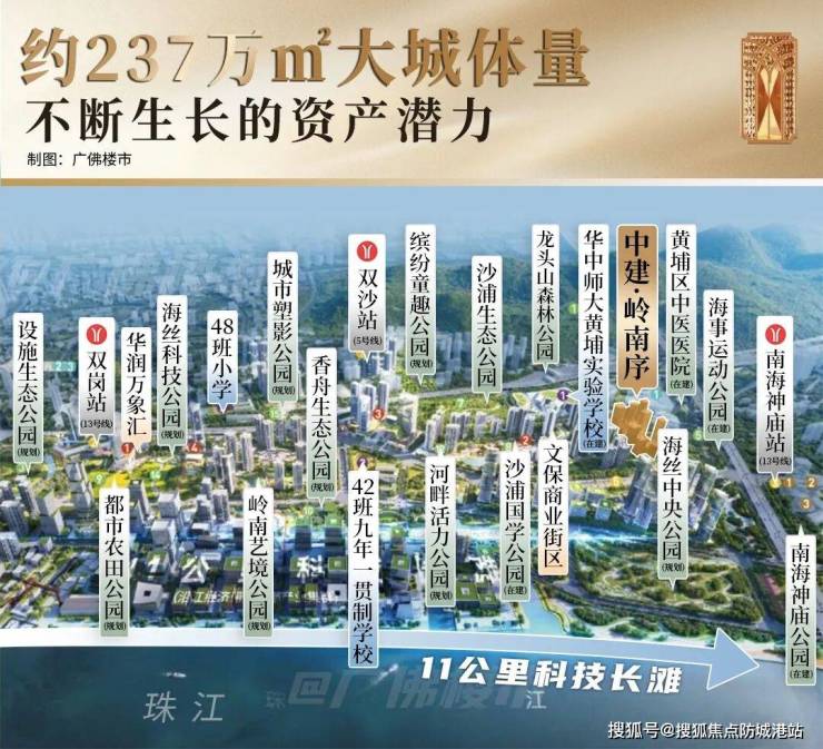 中建・岭南序被市场誉为"六边形战士",原因在于它在地段、交通、景观、教育、商业、产品六大维度上均表现出色,无一处短板。项目位于广州东进第二CBD的核心区位,占地约237万平方米,拥有全方位的生活配套设施。