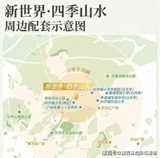 新世界四季山水项目位于广州市黄埔区,坐落在天河智慧城与科学城两大科技创新区域的交汇点。作为区域内少有的地铁上盖项目,它提供了便捷的交通、丰富的教育资源以及完善的商业配套,成为了改善型住宅市场的热门选择。