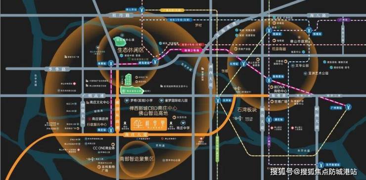 对于在广佛两地跑的朋友来说,时间就是金钱,交通就是生命线。城发·榕华里的位置,简直就是“长在地铁上”的典范。项目步行约15分钟(约1.8公里)就能直达佛山地铁2号线南庄站。这可是实打实的地铁房,下楼买杯豆浆的功夫就到站了。坐上2号线,6站就能到祖庙,10站就能直达广州南站,全程大概30分钟就能覆盖广佛核心区。这意味着什么?意味着你早上在广州喝早茶,晚上回佛山吃晚饭完全不是梦,彻底打破了广佛两地的地理界限。
