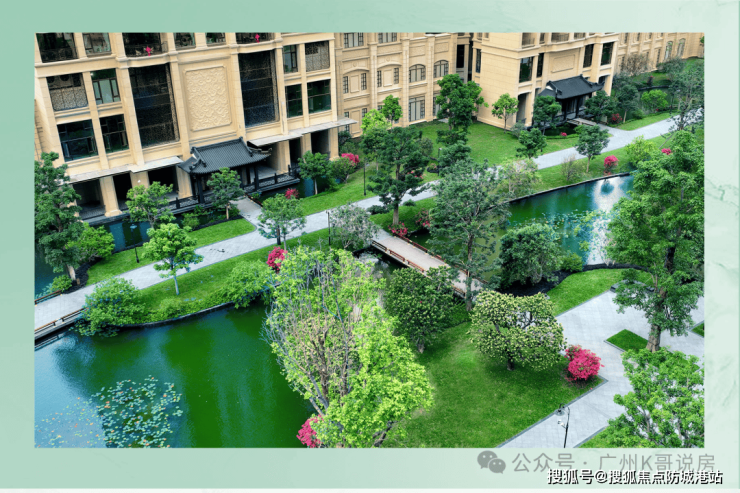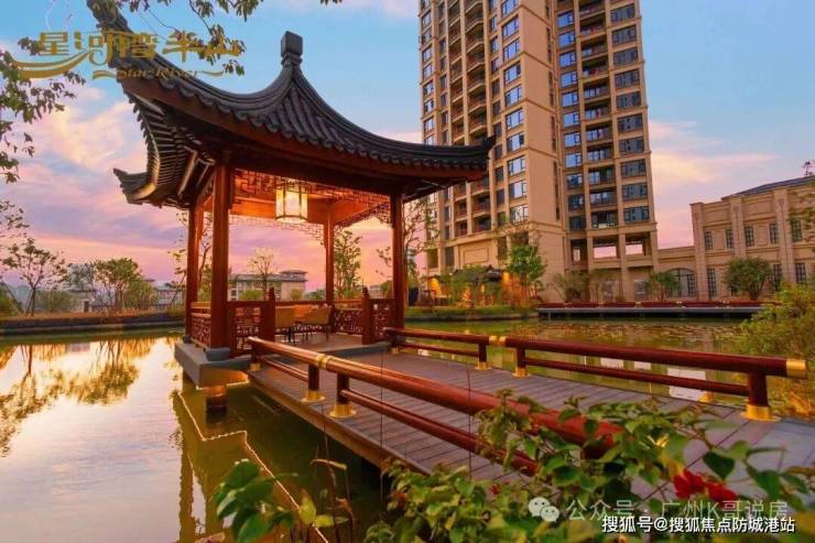 场景化描述:推窗见山,入园即景。项目三面环山,与广州“羊城八景”之一的萝岗香雪公园仅一街之隔。冬季,推窗可赏“十里梅林”的香雪盛景;平日,则是满目苍翠的天然氧吧。社区内部,星河湾萃取晋派、徽派园林精髓,打造“宅前有水,屋后有山”的现代中式园林,实现“出则繁华,入则宁静”的理想生活境界。