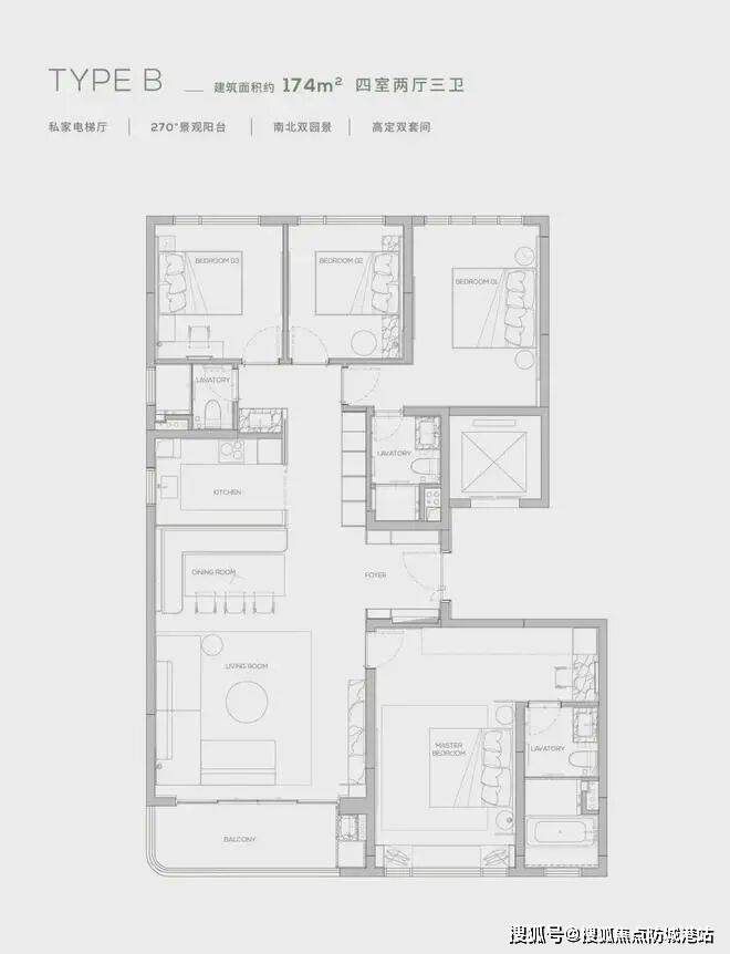项目推145㎡、174㎡户型,1-3#、20-22#六栋,16F小高层产品,2梯2户,边套174㎡,中间套145㎡,后期将推出250㎡大户型产品