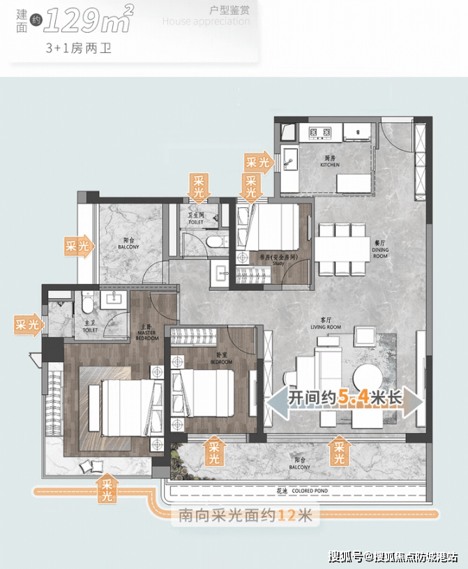(二)129㎡四房两厅两卫:刚加推爆款,适配二胎/三代家庭