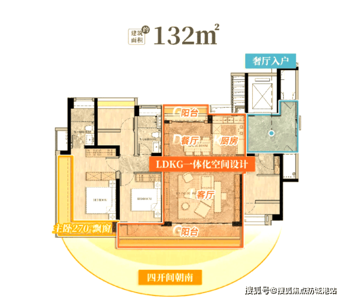 这是项目的爆款户型,也是刚需家庭的热门选择,总价 249 万起,就能拥有三室两厅两卫的舒适空间。这款户型最大的亮点就是南向四开间约 11.1 米的超大采光面,客厅和三个房间都朝南,采光效果拉满,家里时时刻刻都能充满阳光。主卧带 360° 无立柱景观飘窗,视野开阔,还配备了独立卫生间,保证了主人的居住私密性。LDK 一体化的布局让公共空间更通透,客厅、餐厅、厨房相连,不仅增加了空间的通透感,也方便家人之间的互动,不管是日常用餐还是朋友聚会,都非常合适。