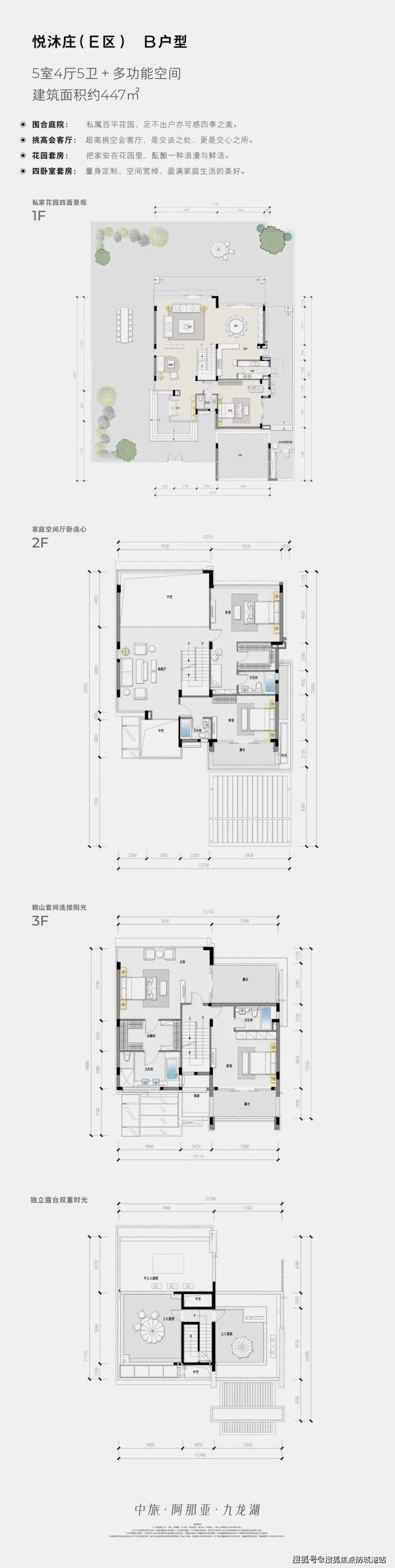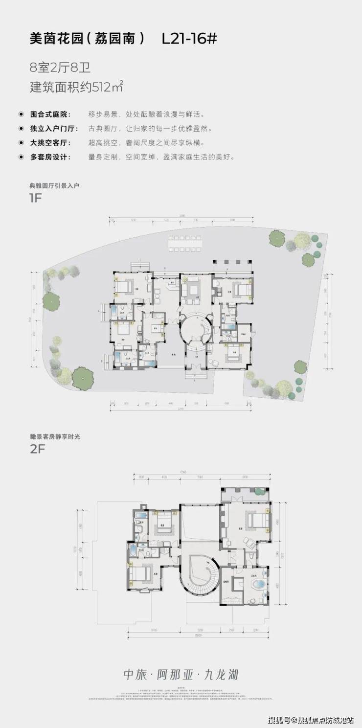 这28席独栋别墅,建筑面积约880㎡-2088㎡,户均占地超2亩,每户都享受独家观景视角,私家庭院超1000㎡。