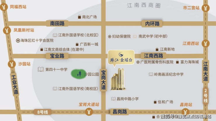 珠江金瑶台地处江南西板块核心地段,交通便利性极高。项目距离地铁8号线宝岗大道站约500米,步行可达,同时距离2号线江南西站约800米,乘坐地铁可快速抵达广州南站、珠江新城等主要枢纽。周边道路系统完善,宝岗大道贯穿海珠区核心,与江南大道和工业大道相连,实现多方向快速通达全城。自驾出行方面,从项目至珠江新城约18分钟车程,便捷覆盖海珠区及邻近区域。此外,江南西板块作为广州老城区重要节点,未来交通规划将进一步优化,使项目的通勤价值和长期升值潜力显著提升,兼具日常出行便利性和投资前景。