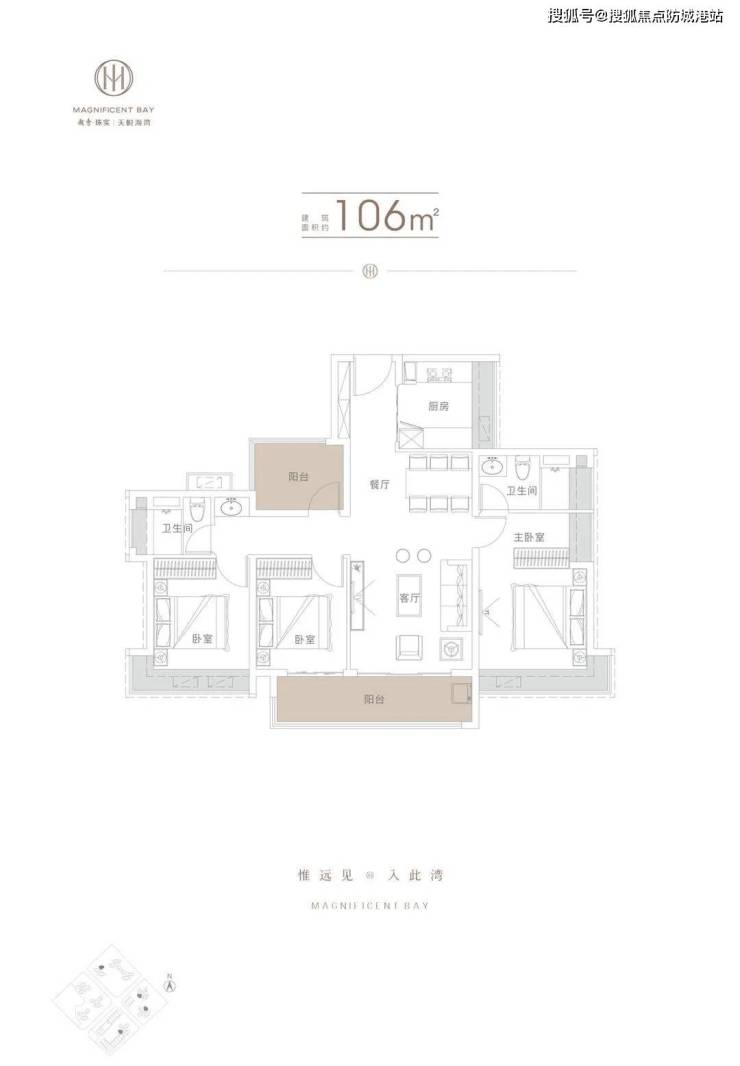 ②N+1灵活单边位四房布局,南北通透户型,采光通风及私密性更佳;