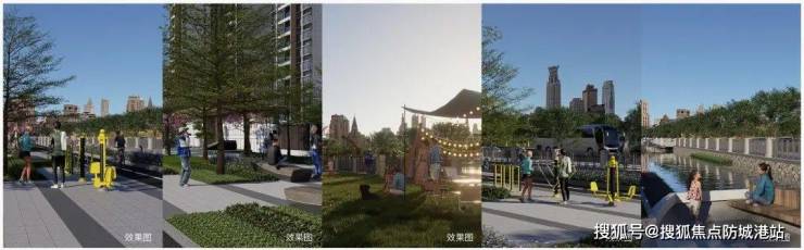 亲和景观带:针对现时河道,后期将以水为轴,节点连片打造一条集”生态、休闲、运动、文化“等功能于一体的城市景观带,规划有绿化空间、水岸平台、社交互动空间、露营草坪等四大节点。