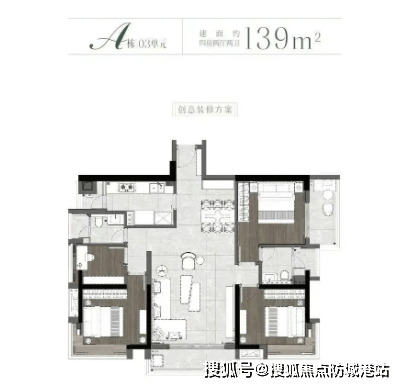 A栋03单元:三面采光三阳台139㎡稀缺南向四房