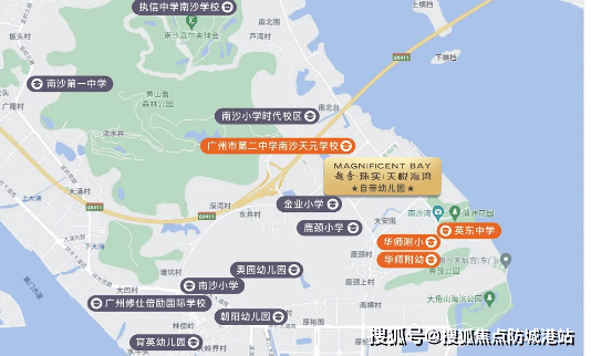 南沙小学时代校区(公立)拥有近百年历史,是南沙区第一所省一级学校,直线距离项目约2km,驾车约5分钟可达,该校还是全国首所通过NCCT国际化认证的公办小学,能为孩子提供国际化的教育视野。维港青藤中学(原英东中学,私立)直线距离约1公里,驾车约3分钟可达,采用纯美式教学,开设NCPA美式高中课程和ULC英式高中课程,满足不同家庭的国际化教育需求。