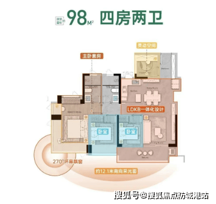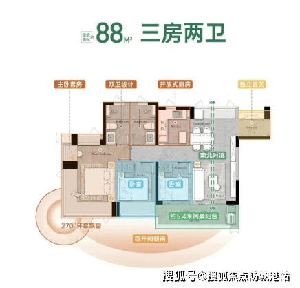 主力户型为88㎡三房两卫、98㎡四房两卫和108㎡四房两卫,全部采用新规设计,取消了传统飘窗结构,实际使用率接近100%。以88㎡为例,做到真三房+双卫+U型厨房,主卧带L型转角飘窗,采光面充足;98㎡则实现四开间朝南,公区动线清晰,几乎没有浪费面积。对于首次置业或小家庭改善来说,这种“小面积大功能”的布局,确实比市面上不少同价位产品更经得起细看。