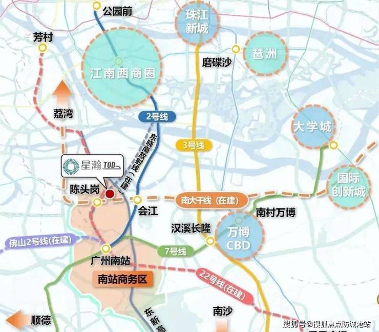 星瀚TOD所处地段融合了交通枢纽优势与区域发展潜力。项目位于地铁22号线陈头岗上,这一轨交线路赋予了它强大的交通辐射能力。2站可达广州南站,在此可换乘2号线,便捷连通城市南北;3站至番禺广场,能转乘3号线和18号线,即便目前前往珠江新城需换乘一次,待22号快线开通,预计约33分钟即可直达。