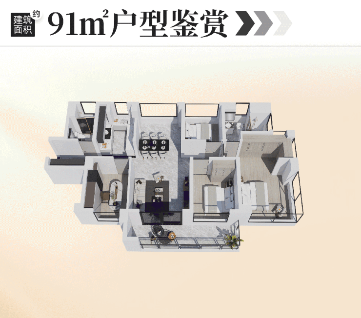 保利怡璟湾推出了77-91平方米的三至四房户型,每个户型都采用了0飘窗设计,实现了约120%的高使用率。这种创新设计不仅增加了室内的实际可用面积,还提升了居住的舒适度。所有户型均为南北通透,保证了良好的采光与通风效果,同时配备了双卫设计,满足现代家庭的生活需求。