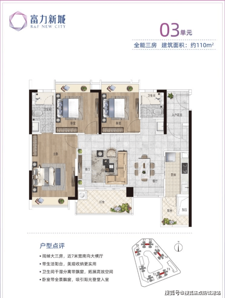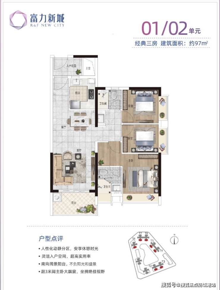 - 富力新城推出73 - 120㎡精装三至四房户型,多样的户型选择满足不同家庭结构的需求。73㎡的精致三房,空间布局紧凑合理,功能齐全,适合新婚夫妇或小家庭居住,精致的装修让业主可以拎包入住,轻松开启新生活。120㎡的宽敞四房,空间开阔,房间布局方正,能满足三代同堂的大家庭居住,为家庭成员提供充足的活动空间,营造温馨舒适的家庭氛围。售楼处电话:400 - 828 - 5661