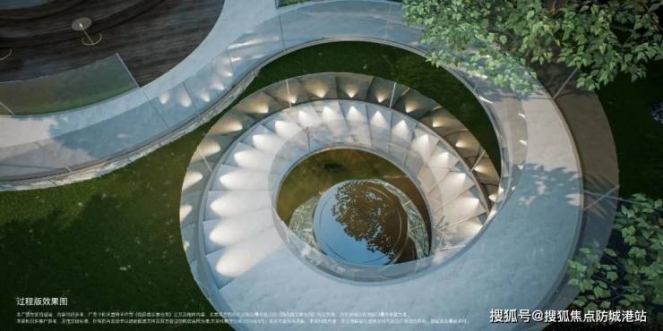 它采用退距35米,抬高7-9米的设计,形成了一个内外9000平的双园林系统。