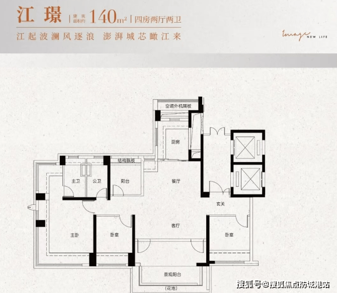 建面约140㎡:大四房两厅两卫,北向一线望江,稀缺板楼设计,专梯专户,尊享高贵体验。
