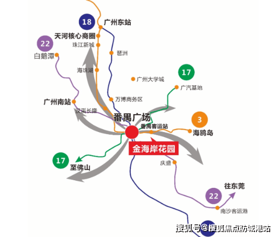 项目处于番禺客运站与番禺广场双TOD之间,五轨交汇,实现了一横五纵的大动脉畅通四方,方便快捷地连接广州三大CBD区域,使得出行变得极为便利。
