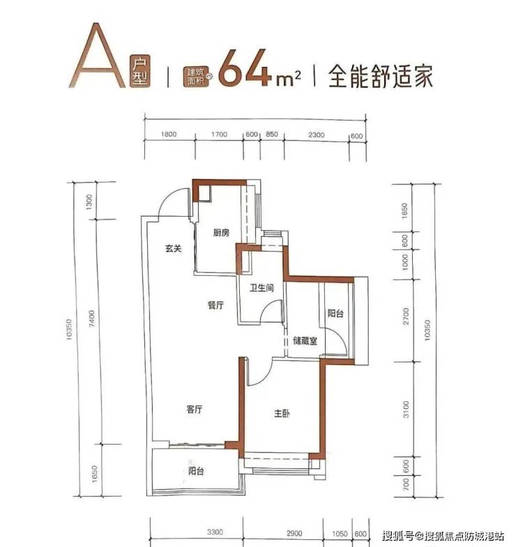 项目面积最小的64平南向户型,户型阳台和主卧朝南,朝向比77平的北向更占优势。