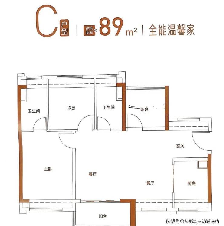面积最大的89平,三房带主套,横厅设计,整体南北对流,适合二胎和三胎家庭。