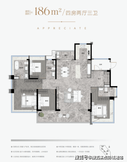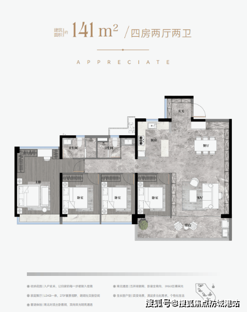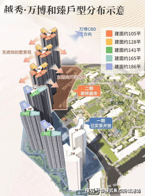 越秀·万博城首开CBD组团占地约2.32万平方米,分三期开发。一期地块虽然面积不大,但通过一块巨大的盖板将一二三期连成一体,形成了约7.2万平方米的超大园林,提升了居住舒适度。建筑抬高3-8米的设计不仅改善了采光、通风条件,也增强了景观视野。二期主打建面约105平方米和128平方米的户型,属于超高使用率的新规户型。