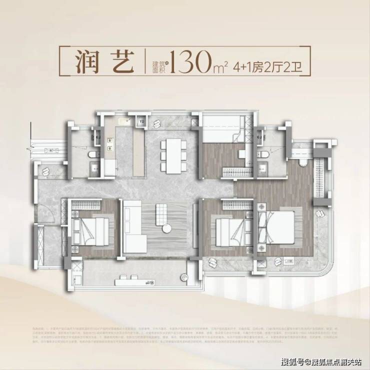 ▶ 建面约130㎡ 南北对流4+1房两厅两卫