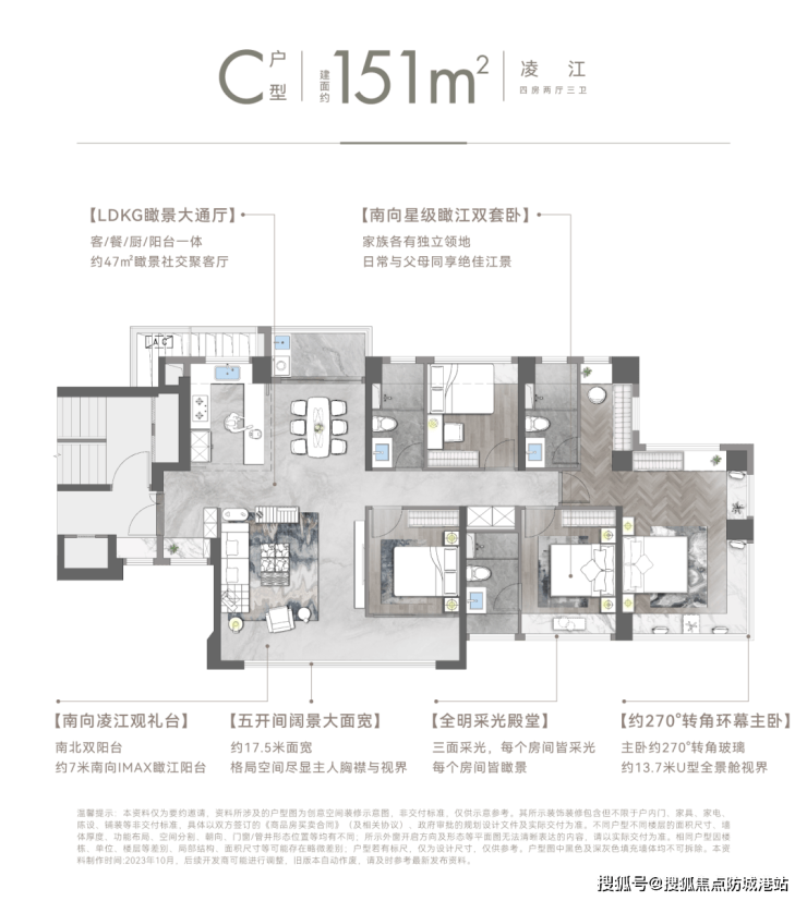 建发·灯湖天峯提供了建筑面积约为131-151m²的大宅户型,每个尺度都经过精细打磨,力求呈现最佳观景视野。主要特点包括:
