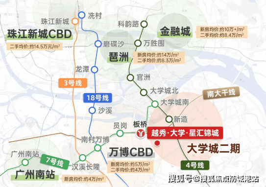 越秀·大学·星汇城所在的广州大学城二期,并非传统意义上的居住新区,而是广州南部重要的创新与智力资源集聚区。从城市发展格局来看,该区域承担着链接科技创新、人才集聚与居住承载的多重角色。