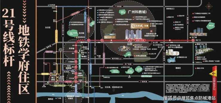 项目距地铁21号线山田站D出口直线距离约50米,这一数据意味着居民从小区大门步行至站台仅需不到一分钟的时间。这种“家门口即站点”的布局,在广州目前的在售新房项目中并不多见,它直接解决了通勤族最痛点的首末公里问题。对于在天河公园、员村甚至珠江新城工作的上班族而言,21号线快线模式提供了高效的通行方案,乘坐快线仅需6站即可抵达天河核心区域,若前往黄埔科学城方向则仅需3站。早高峰时段,居民无需担心接驳巴士的等待时间或共享单车的调度问题,这种确定性的通勤体验极大地提升了日常生活的从容度。除了轨道交通,项目紧邻广汕公路,驾车出行可一条路直达黄埔与天河,且距离广州北三环高速朱村出口直线距离约1.3公里,未来随着增天高速的建成,路网结构将进一步优化,为自驾业主提供更多元化的出行选择。这种双轨并行的交通体系,使得大华城东瀚不仅服务于地铁依赖型客户,也兼顾了有私家车家庭的出行需求,形成了立体化的交通优势。