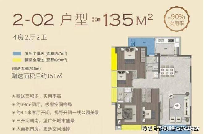 约 135㎡的四房户型,是为追求高品质生活的家庭量身打造。整体户型方正,布局大气,空间开阔。