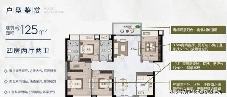 125㎡四房:方正双厅(客厅开间4.2米,餐厅可放6人桌),南北通透(穿堂风风速0.8m/s,夏天不用开空调);独卫套间(带衣帽间),适合老人居住(避免起夜干扰);
