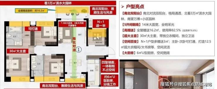 138㎡3+1房:南北双向阳台(南阳台6.8米,北阳台3.2米),既能放洗衣机+晾衣架,又能做「空中菜园」;U型厨房(操作台长度4.5米),两个人做饭不挤;主卧套间(带独立卫浴+衣帽间),面积约18㎡(比同面积户型大3㎡);