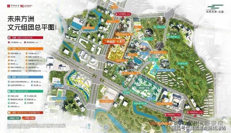文元组团(未来方洲),配备一所12班幼儿园,36班九年一贯制学校