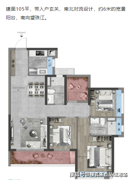 户型设计亮点十足。105 平户型带入户玄关,南北对流,约 6 米宽景阳台,南向望珠江;125 平户型同样南北对流,南向四开间,约 6.5 米宽景阳台,格局方正。大户型如 168 平、188 平独立电梯入户,南北对流,约 10 米宽景阳台,约 17 米五面宽观江视野;210 平一梯一户,LDK 一体化大方厅,南北对流,双面宽阳台南侧布置。多样户型满足不同家庭结构与需求,以宽敞的空间、良好的采光通风和绝佳的江景视野,为业主打造舒适的居住体验。
