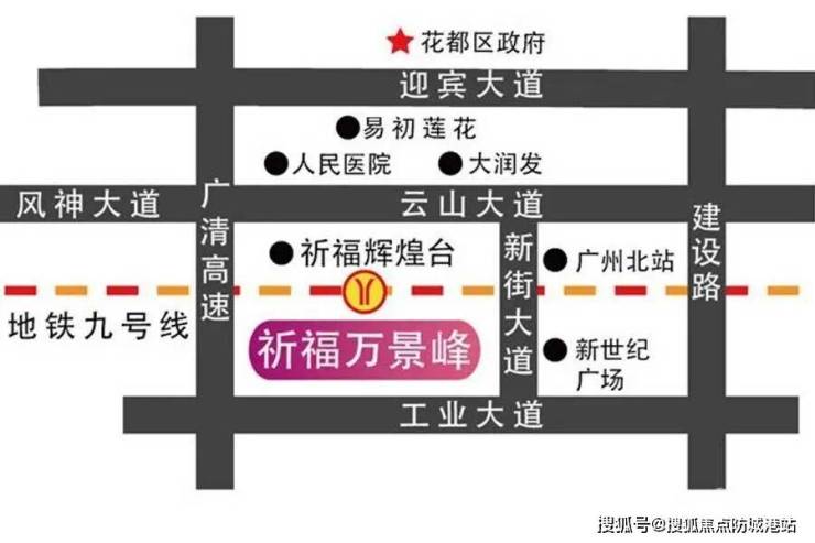 祈福万景峰位于花都区新华街繁华城区中心(新街大道),广州北站西侧,广清高速出口东侧,紧邻已开通的地铁9号线广州北地铁站A出口及规划中的地铁24号线,瞬达广州各区。