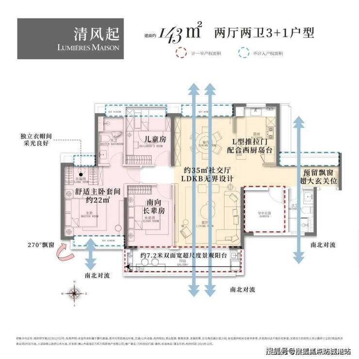 建面约95-180㎡三至五房,南北通透,得房率超85%;