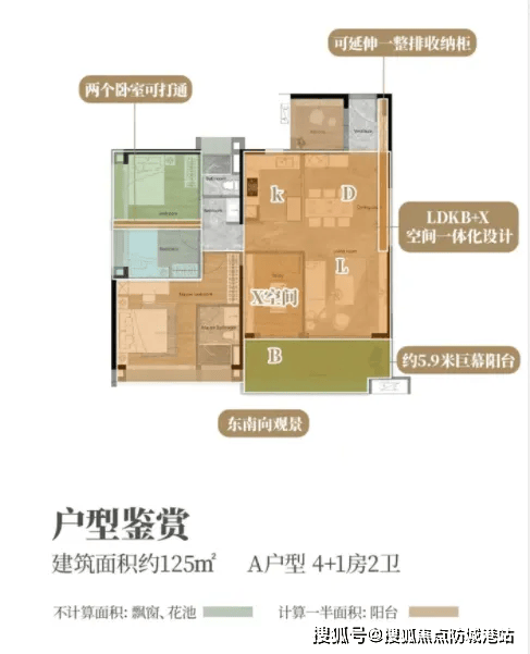 125㎡(4+1房):总价约400万左右,四开间朝南,U型厨房搭配生活阳台,主卧套房带独立卫浴和步入式衣帽区,动静分区合理,适配二胎家庭;