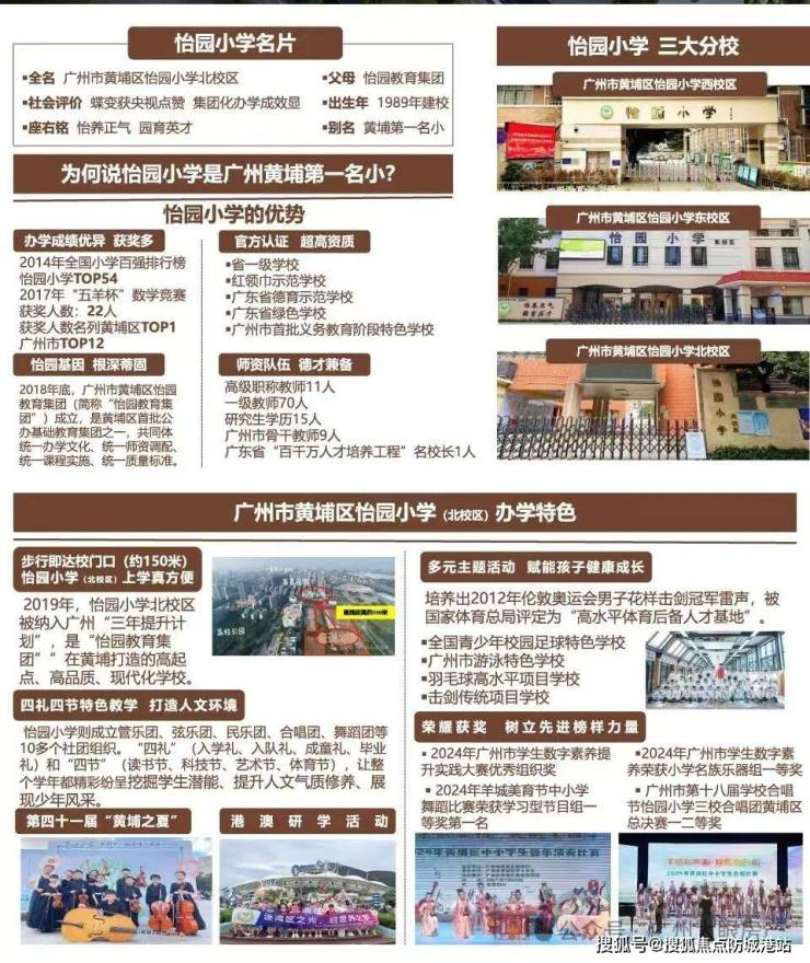项目自身配建了一所9班制幼儿园,并已确定对口的小学为怡园小学。怡园小学是黄埔区第一梯队的老牌名校,办学历史悠久,教学质量优异。此外,广州86中(初中)也是区域内知名的优质中学,为业主子女提供了良好的教育保障。