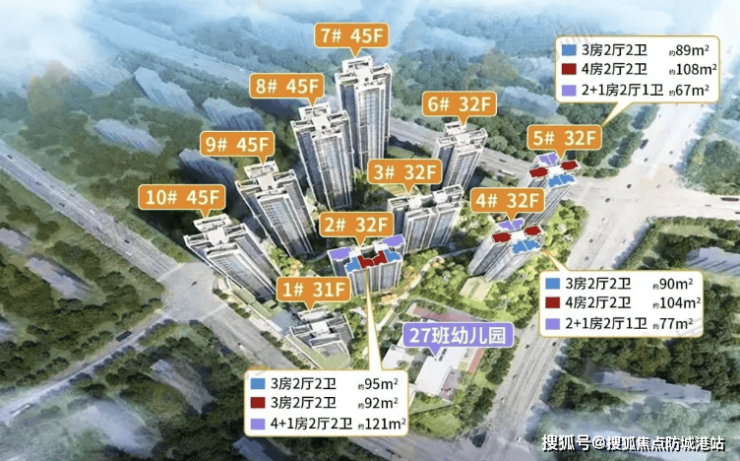总层高:7栋47层住宅楼、7栋44层住宅楼、5栋42层住宅楼、6栋33层