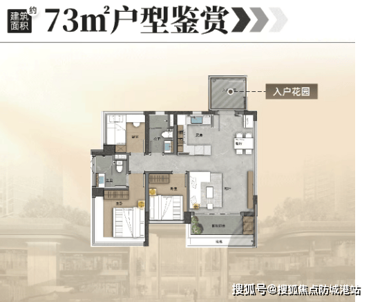 建面约73㎡户型:刚需上车首选,打造三房设计,贴合年轻小夫妻、单身贵族等刚需群体需求。该户型集齐入户花园、灵动大方厅、LDKB一体化、多开间朝南、270°环幕飘窗等所有优质户型元素,建面仅73㎡,实际使用面积可达90㎡以上,小空间实现大尺度。总价不到200万,相比板块同面积段房源,起码劲省100万,轻松圆年轻群体广州买房梦,性价比拉满。