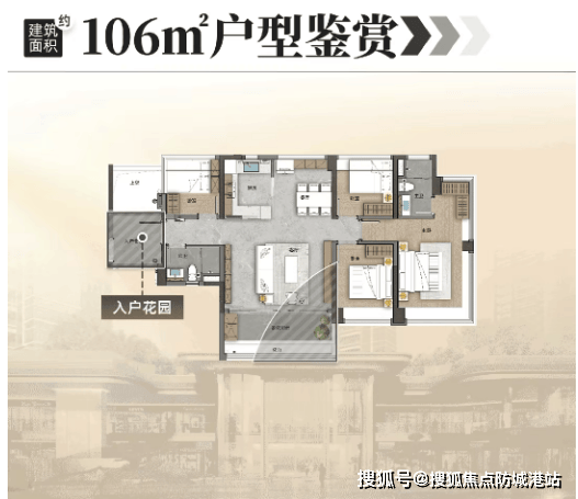 建面约106㎡户型:三代同堂优选,五开间朝南,约16.3米大面宽,南北对流,格局与空间感堪比140㎡以上豪宅,贴合三代同堂、多人口家庭需求。空间布局开阔,动静分区清晰,长辈房、儿童房、主卧分区合理,保障每一位家庭成员的居住私密性;搭配入户花园、270°环幕飘窗、大方厅等设计,延展使用空间,提升居住质感,让三代同堂的生活更舒适、更从容。