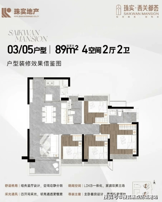 珠实·西关都荟主打89㎡、121㎡、142㎡三大主力户型,全部实现100%使用率设计,颠覆传统公摊逻辑。89㎡做到四房两厅两卫,满足二胎或三代同住需求;142㎡五房双主套配置,兼顾私密性与功能性,为高端改善家庭提供奢适空间。全系采用高定智能化精装体系,配备进口VRF中央空调、新风系统、厨房岛台,并引入一线品牌厨电与卫浴,部分单位更标配洗碗机及全屋智能家电,细节品质对标高端改善标准。户型布局注重通透性与互动感,LDK一体化设计增强家庭交流,南北对流保障空气流通,居住体验全面升级。
