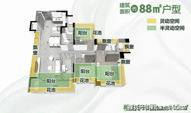 主力户型为88-105-117平方米四房,采用超新规设计,使用率超过130%,大部分房间都是阳台报建,阳台报建可以送一半面积,其次飘窗方面也突破了上限。首推的1号楼为31层高的小高层;后面2、3号楼为46-47层的超高层项目,采用深呼吸蝶式T5楼型,户户朝南,确保每个住户都能享受到充足的阳光和开阔的视野。