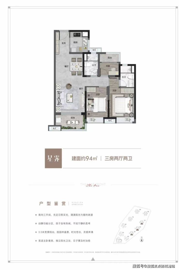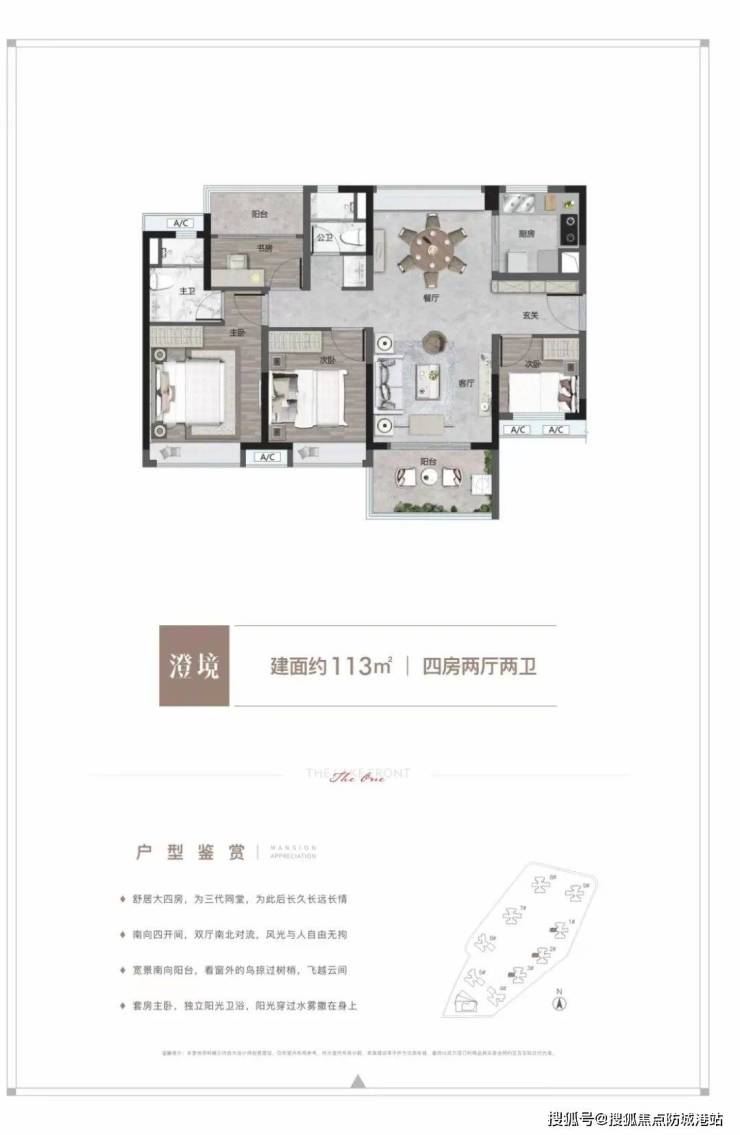 项目主推户型面积为80-140平方米的三至四房,采用围合式布局设计,保证了超宽楼间距和良好的通风效果。部分户型南北通透,采光面大且空间尺度感更好;有的户型卧室带有大飘窗,增加了居住的舒适度。所有户型均采用精装修交付标准,确保业主入住时即可享受高品质的生活环境。