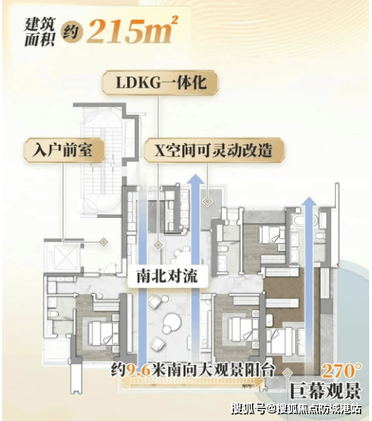 215㎡大平层采用3梯3户设计,配备超大入户前室,保障居住私密性与尊贵感;约9.6米南向大景观阳台,搭配主卧270°观景飘窗,能将社区园林景观尽收眼底。300㎡大平层则为三梯两户设计,双套房布局,空间开阔奢华,部分户型在家即可俯瞰长隆旅游度假区,沉浸式感受乐园的欢乐氛围,是高端改善客户的首选。