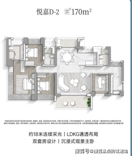 除了180㎡户型,项目还有多款优质户型可供选择。其中,悦嘉D-2户型建筑面积约170㎡,采用全明通透设计,南北通透对流,四开间朝南,纵向空间舒适惬意;约28㎡主卧套房,搭配无界视野飘窗,能实现沉浸式观景;半开放式中西厨设计,搭配LDKG一体化布局,让烹饪与社交完美融合;X空间可灵动改造,实现家庭空间与成长同步。
