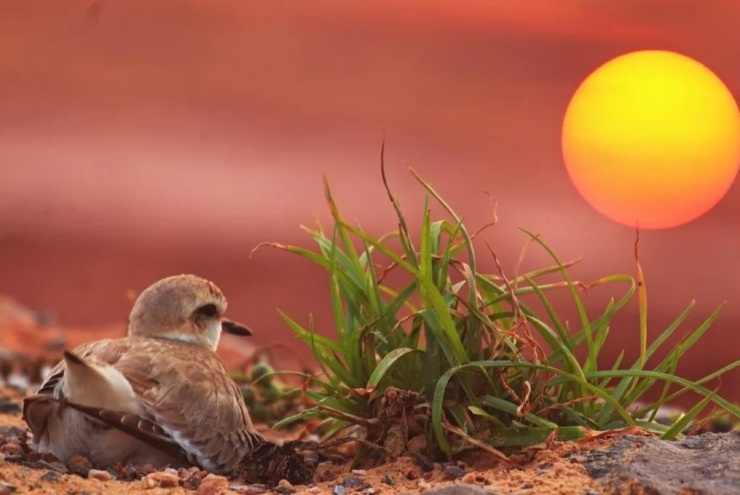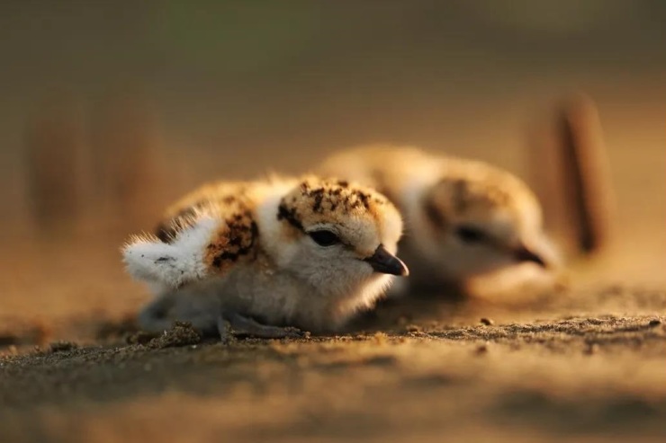 “除了勺子,3月初至7月我还喜欢观察记录环颈鸻及白脸鸻繁殖,它们繁殖前先挖一个浅坑,待一周后产蛋,每天产一个,连产三天,等产完3个或4个蛋时才开始孵蛋,30天后才出壳,破壳前在蛋壳内有叫声及啄壳声,出壳后2小时绒毛才能干,此时可以站立,待4小时后方能快速跑,小家伙很萌,惹人爱。”