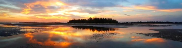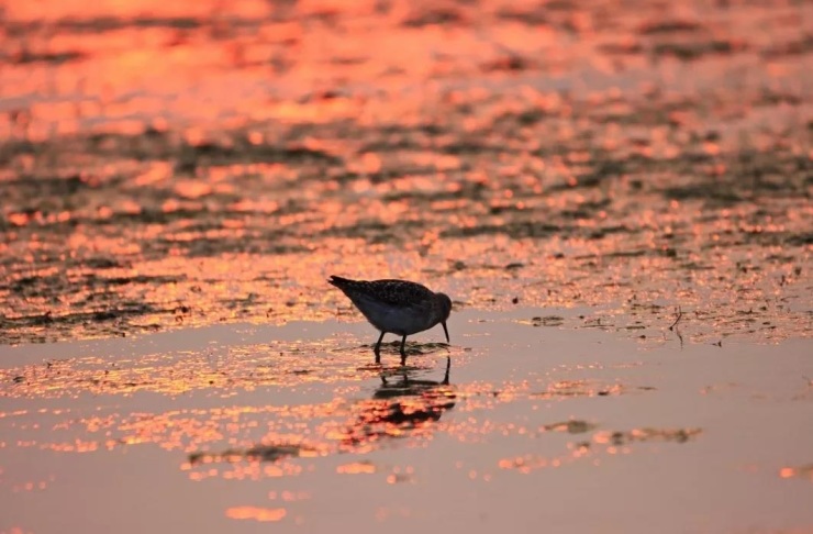 夕阳下的沙岛被晕染成了金黄色,渔民挑着螺满载而归,水鸟趁着退潮踱步觅食,希望这样恬静和谐的画面一直延续下去