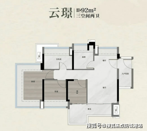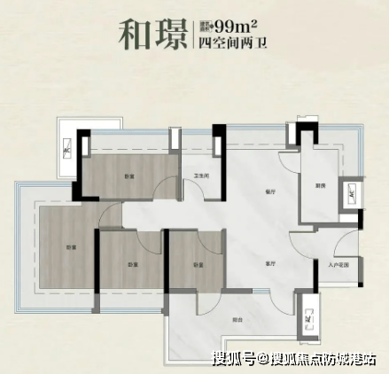 越秀·鸿璟台主推建面约89–122㎡的三四房,全部采用新规全南向布局。以89㎡四房为例,四个开间均朝南,卧室集中排布,客厅开间达3.4米(不含墙体),搭配L型阳台,采光和通风效果远超同面积段常规产品。92㎡户型则把阳台打造成“百变空间”——可改造成洗衣家政间、茶室、小型健身房,甚至纳入次卧扩大使用面积。板楼产品(109㎡、122㎡)更强调南北对流,主卧带独立卫生间和观景飘窗,厅房通透无遮挡。值得注意的是,所有户型得房率普遍较高,部分单位因新规取消飘窗计容,实际使用面积接近甚至超过建筑面积,这对注重实用性的购房者来说是个实在优势。